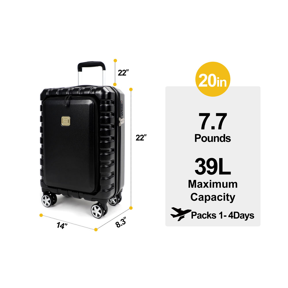 AIRLINE Hardside Carry On Luggage With TSA Lock Front Opening 20″-inch Black Suitcase