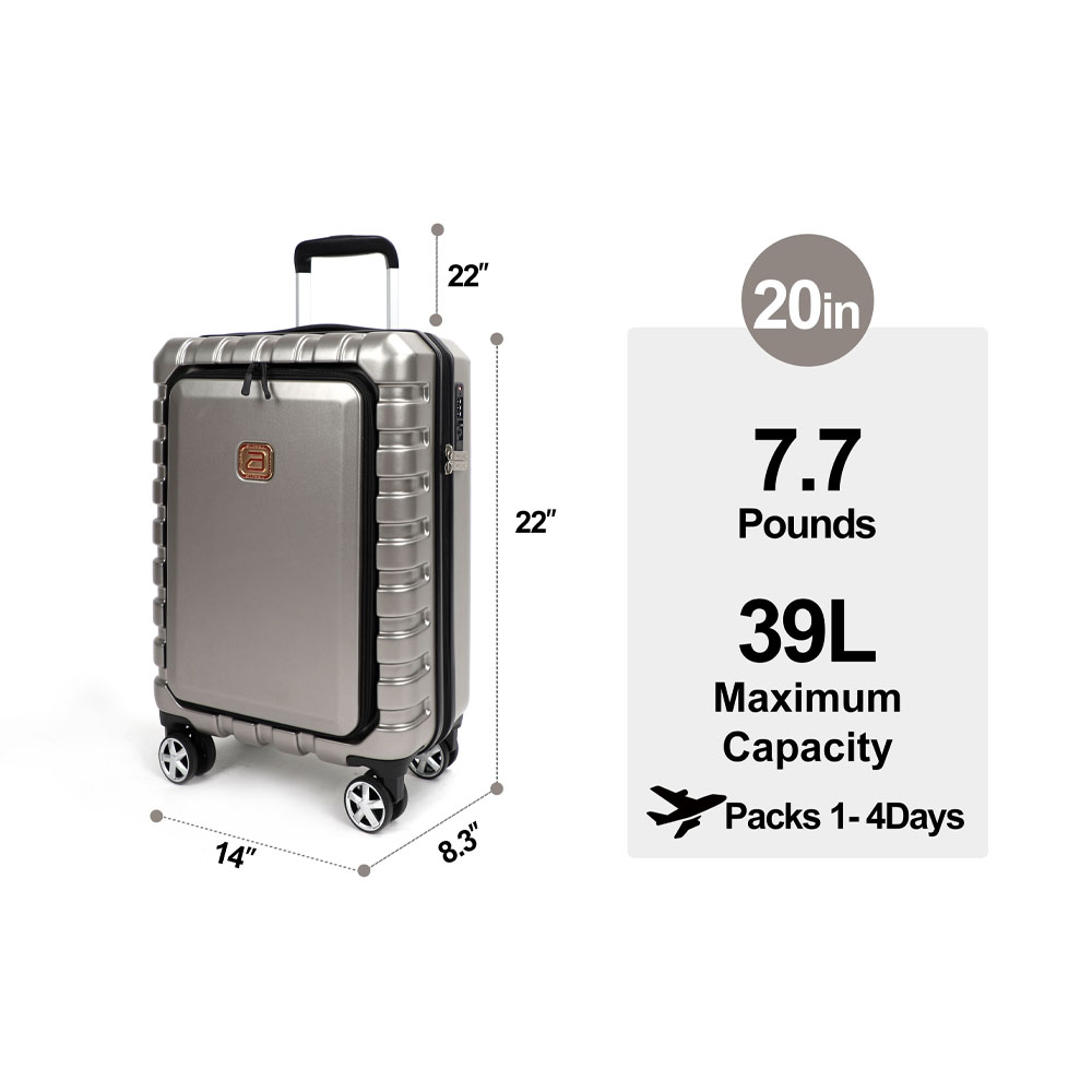 AIRLINE Hardside Carry On Luggage With TSA Lock Front Opening 20″-inch Iron Grey Suitcase
